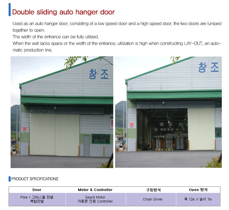 Double sliding auto hanger door